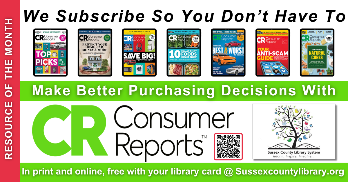 Newton, NJ – This month, the Sussex County Library System (SCLS) is proud to highlight its premium access to Consumer Reports both online and in print. Community members can rely on Consumer Reports’ trusted reviews and expert advice to make smart, informed purchasing decisions across thousands of products.